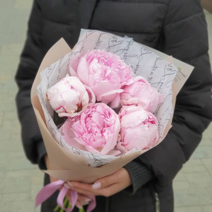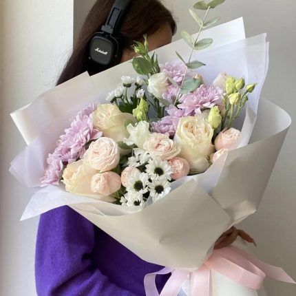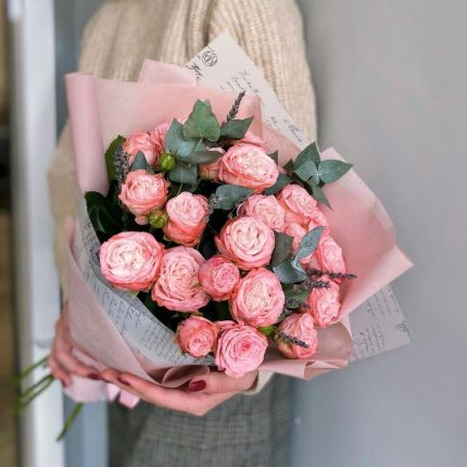 Букет Нимфа с кустовыми пионовидными и одноголовыми розами