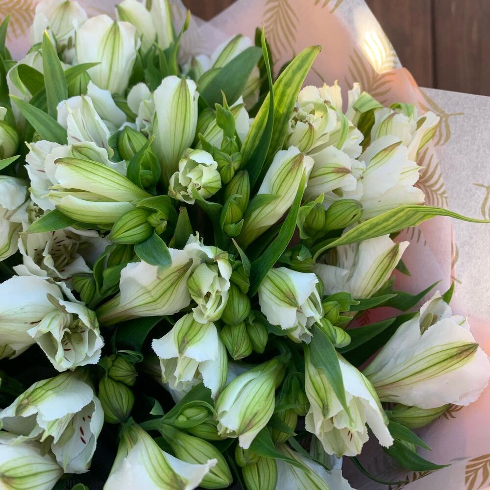 Букет из 11 белых альстромерий в упаковке