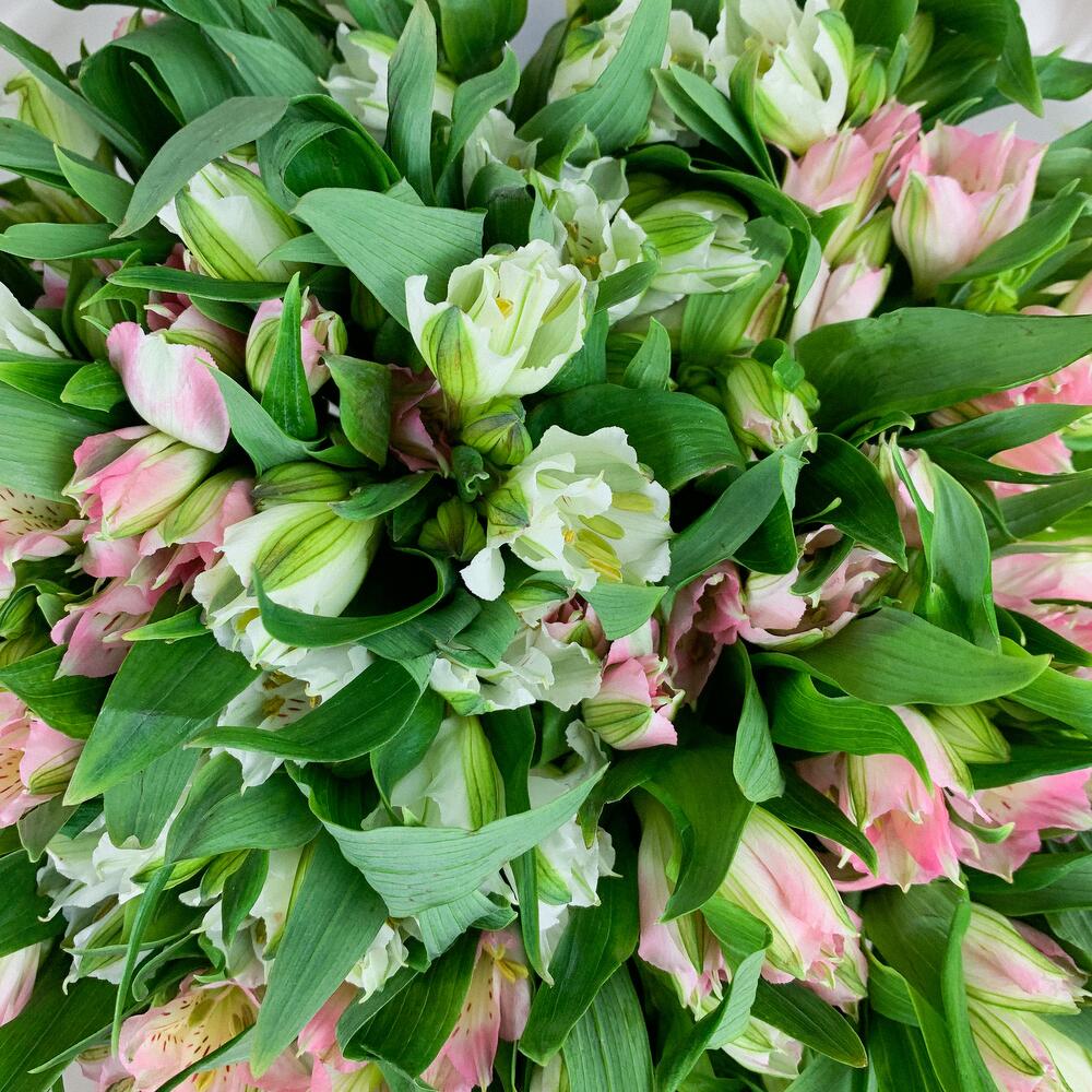 Упаковка в подарок – 1 шт.букет из альстромерия белой и розовой – 25 шт.