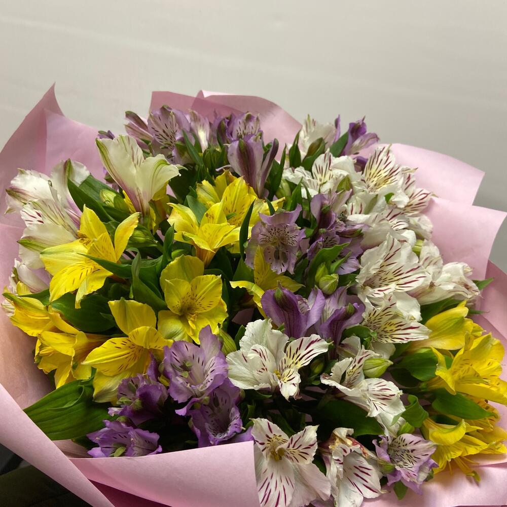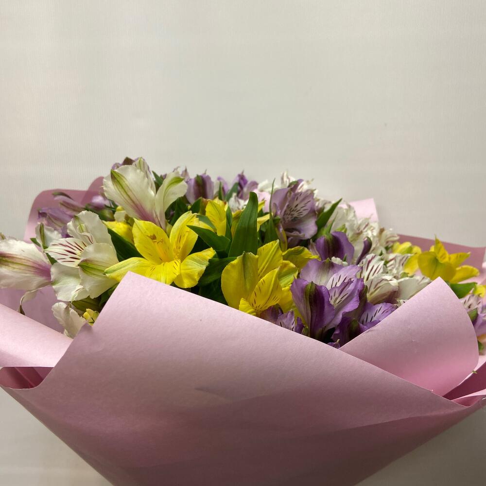 Альстромерия – 13 шт.Упаковка дизайнерская – 1 шт.Лента – 1 шт.