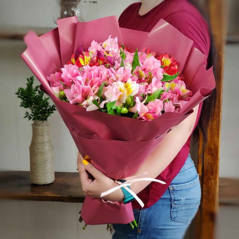 Альстромерия – 17 шт. Лента – 1 шт. Современная упаковка – 1 шт.