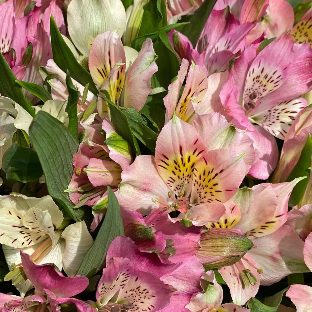 альстромерия микс – 9 шт.Подарочная упаковка – 1 шт.средство для продления жизни срезанных цветов – 1 шт.