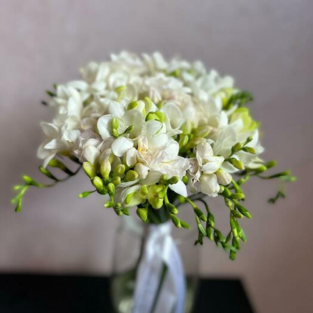 Фрезия – 31 шт.Атласная лента – 1 шт.