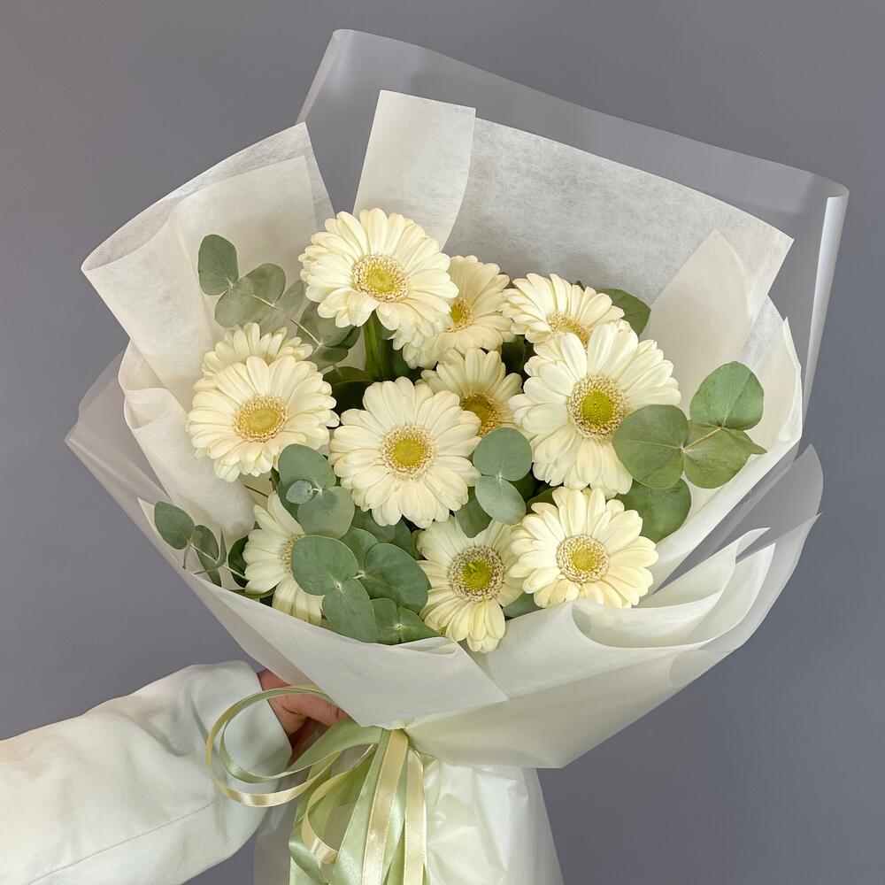 Букет с нежной герберой “Ванильный чизкейк”