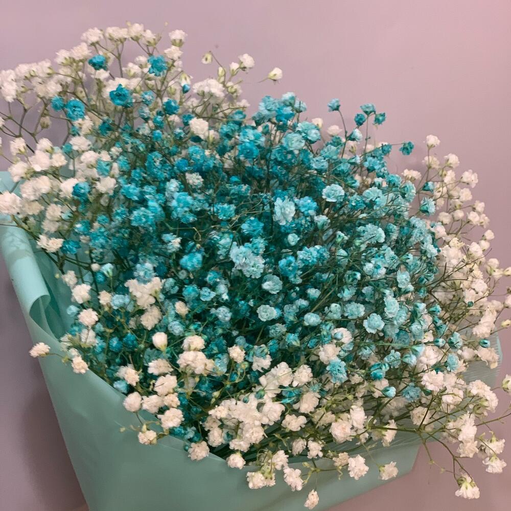 Гипсофила – 7 шт.Атласная лента – 1 шт.Дизайнерская упаковка – 1 шт.