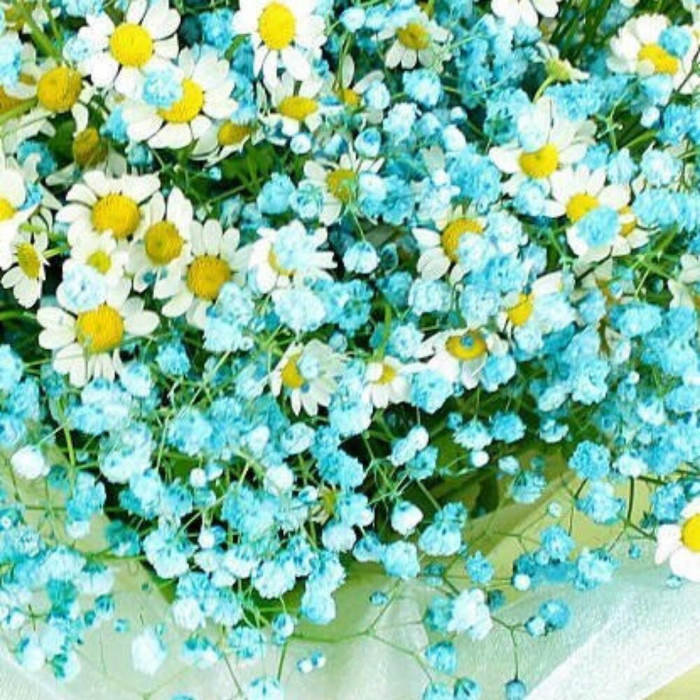 Букет из небесной гипсофилы с ромашками