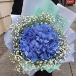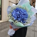 Букет синей гортензии и гипсофилы