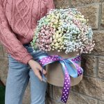 “Сиреневый туман” – композиция из гипсофилы в шляпной коробке