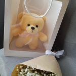 Мишка плюшевый – 1 шт.Гипсофила – 3 шт.Крафт упаковка – 1 шт.Лента – 1 шт.Пакет подарочный – 1 шт.