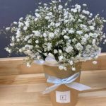 “Сиреневый туман” – композиция из гипсофилы в шляпной коробке