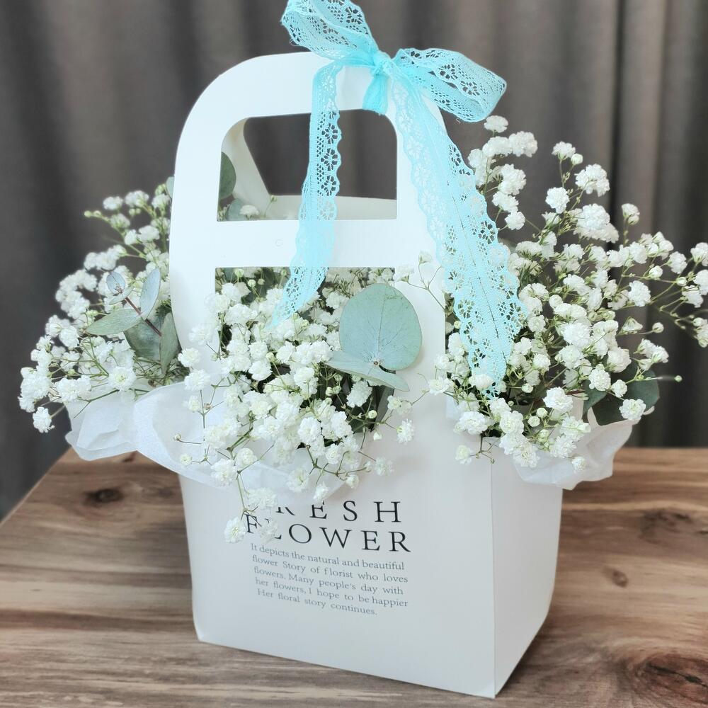 Воздушное облако белоснежной гибсофилы с ароматным эвкалиптом в стильной сумочке)))