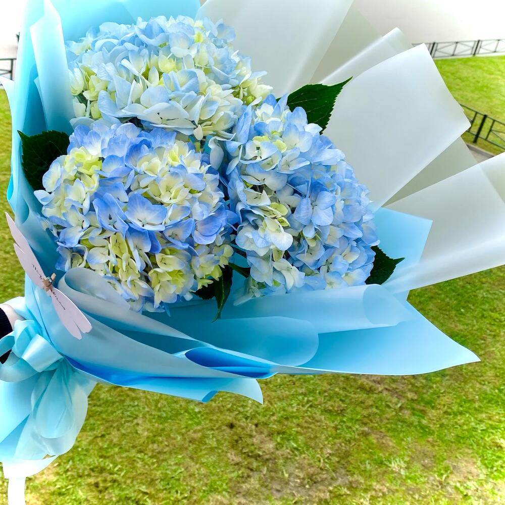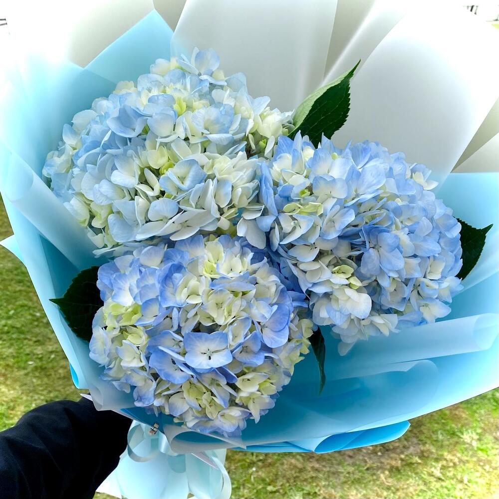 Голубой букет из 3 гортензий «Облачко»