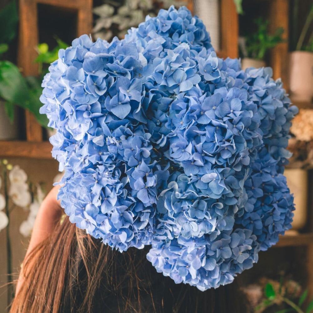 Гортензия голубая – 9 шт.Лента атласная – 2 шт.Открыточка с вашими пожеланиями – 1 шт.хорошее настроение – 100 шт.инструкция по уходу за цветами – 1 шт.коробка переноска – 1 шт.Кризал – 1 шт.