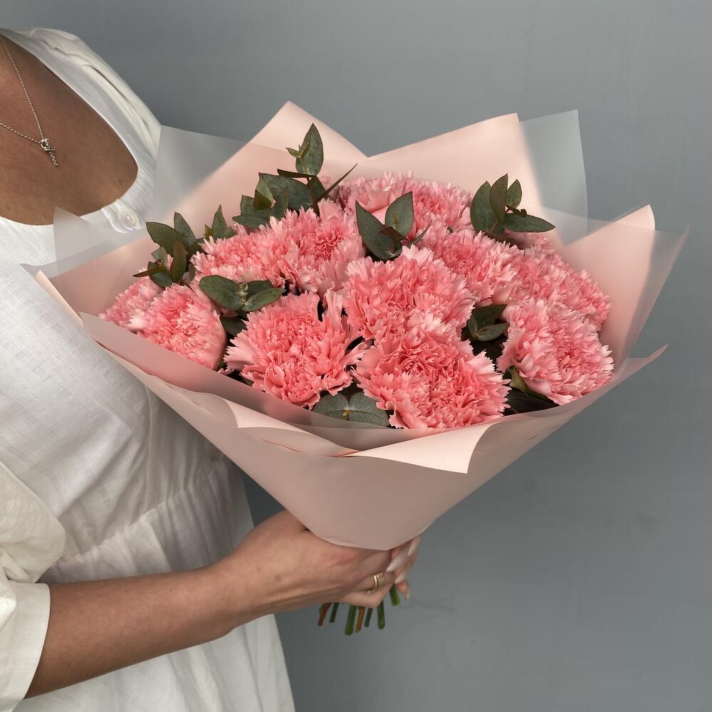 Букет диантусов (гвоздик) с эвкалиптом
