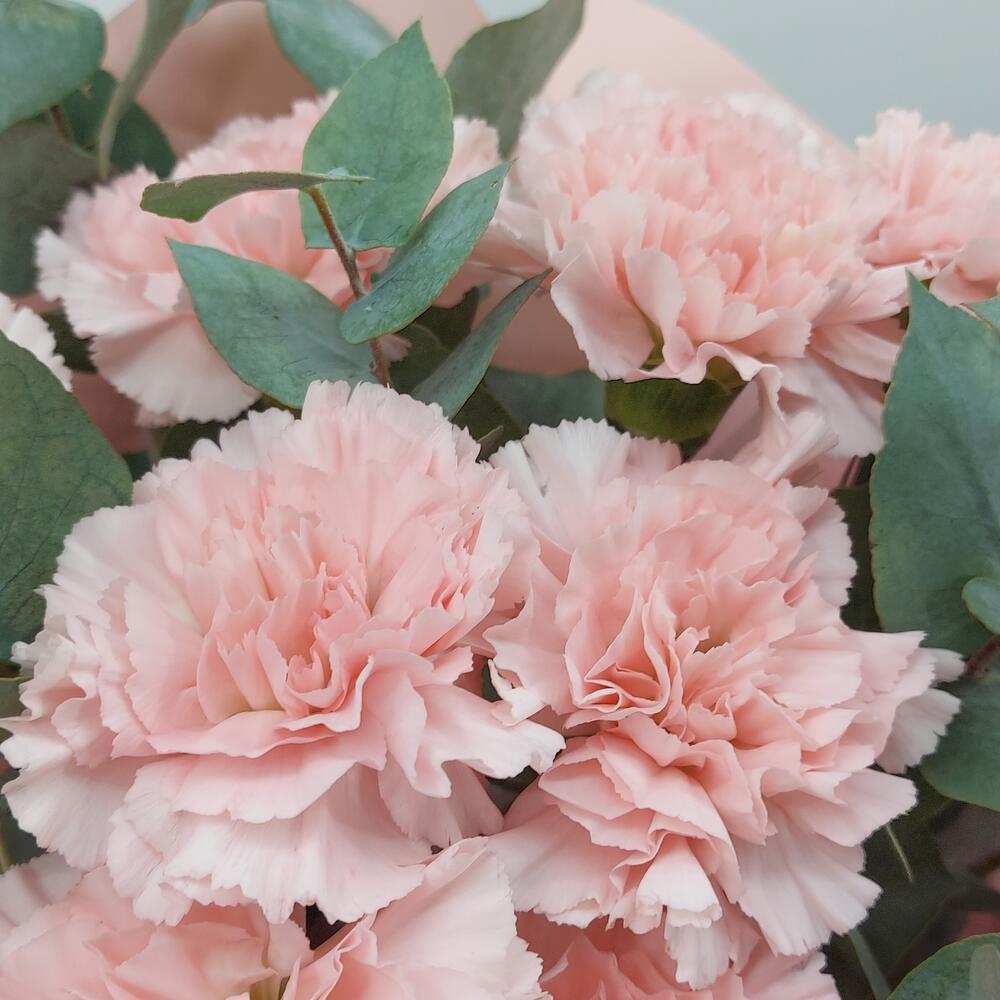 Букет диантусов (гвоздик) с эвкалиптом