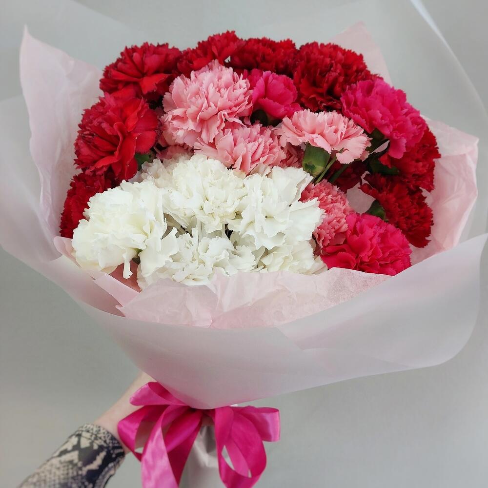 Диантус – 25 шт.Тишью – 2 шт.Авторская упаковка – 1 шт.Лента атласная – 1 шт.