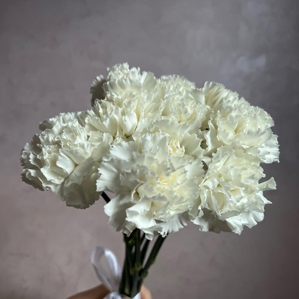 белые диантусы – 11 шт.Атласная лента – 1 шт.