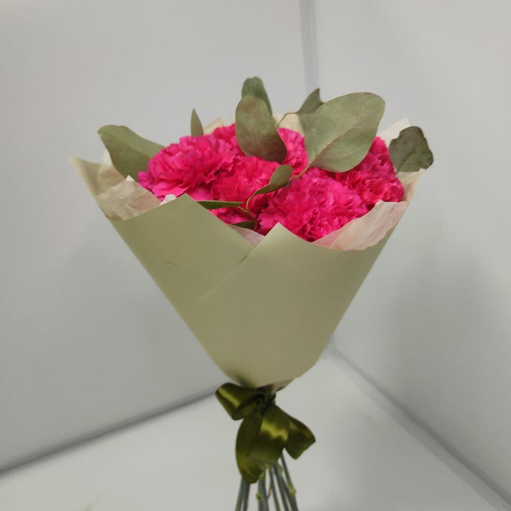 Букет из 9 гвоздик малиновых с эвкалиптом