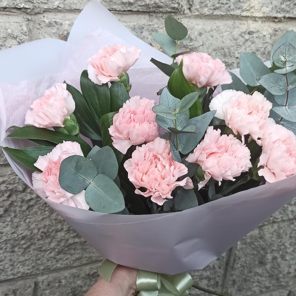 Букет из диантусов с эвкалиптом
