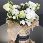 Цветочная композиция в корзине с белым лизиантусом "Нежная"
