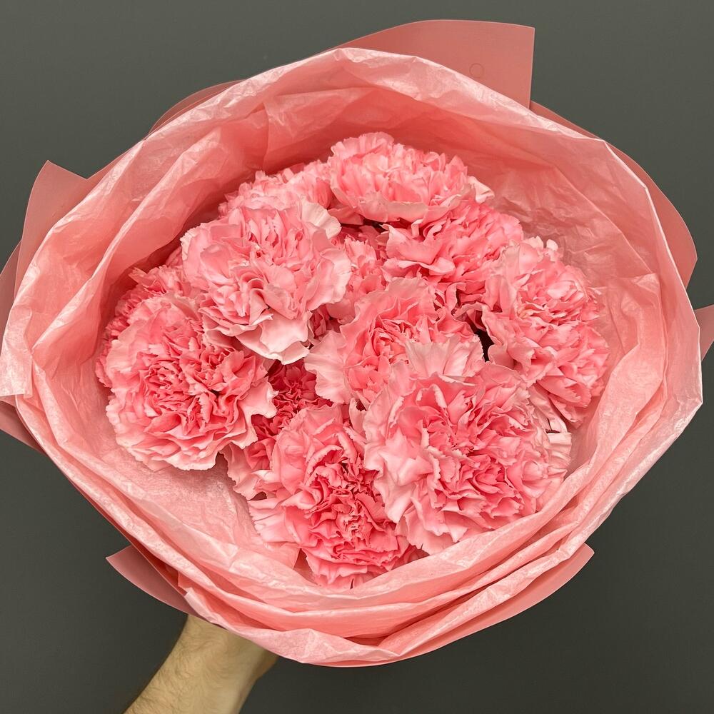 Лента атласная – 1 шт.Упаковка корейская пленка – 1 шт.диантус одноголовый розовый – 13 шт.тишью нежно-розовое – 1 шт.