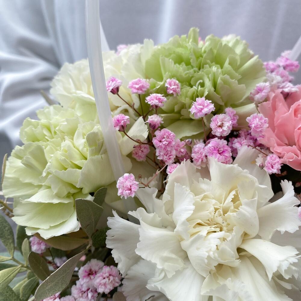 Диантус – 7 шт.Гипсофила – 1 шт.Фисташка – 1 шт.Оазис – 1 шт.Сумка – 1 шт.
