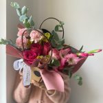 Корзинка Для Мамы из розовых роз и эвкалипта