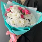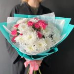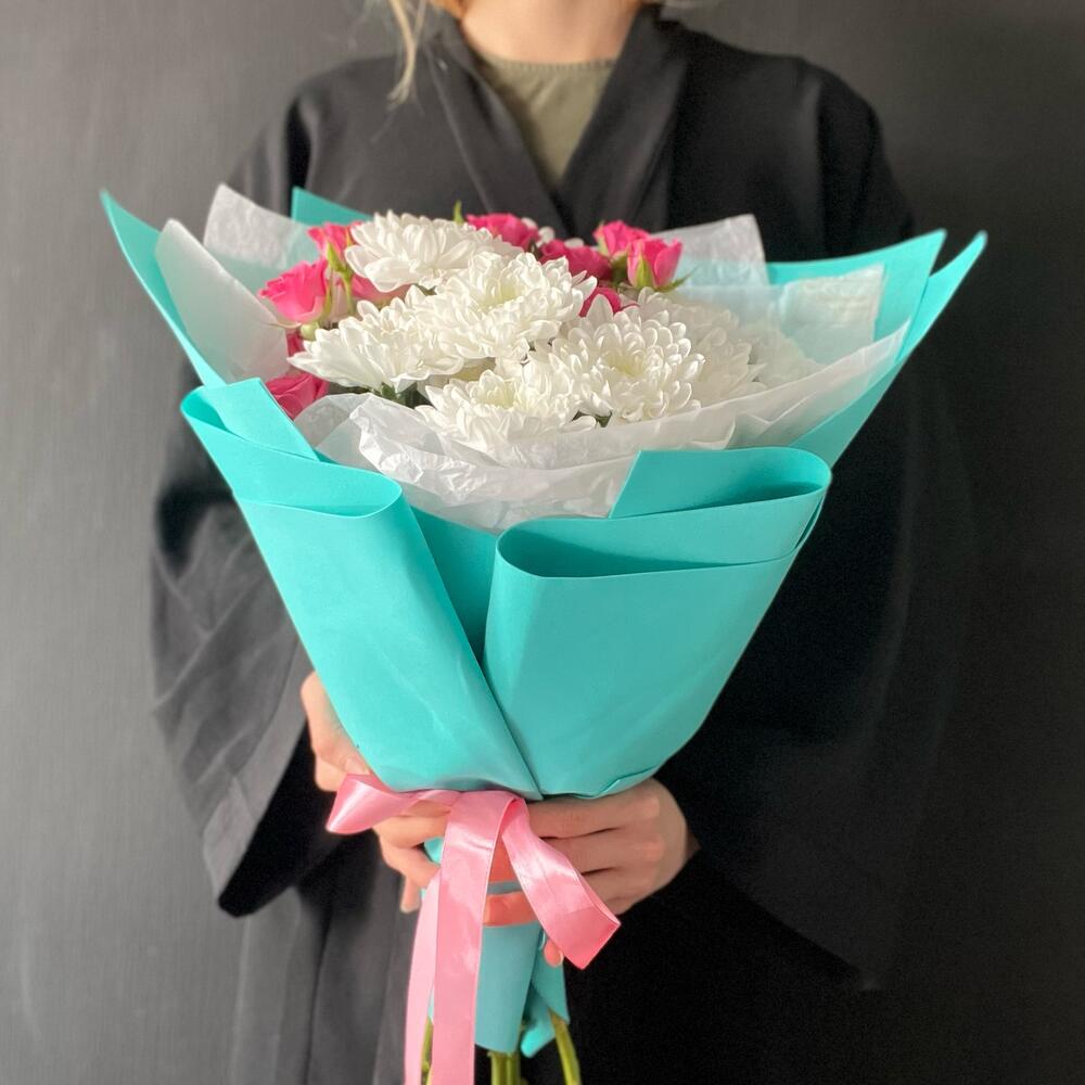 Хризантема кустовая – 3 шт.Упаковка – 1 шт.Роза кустовая розовая – 3 шт.