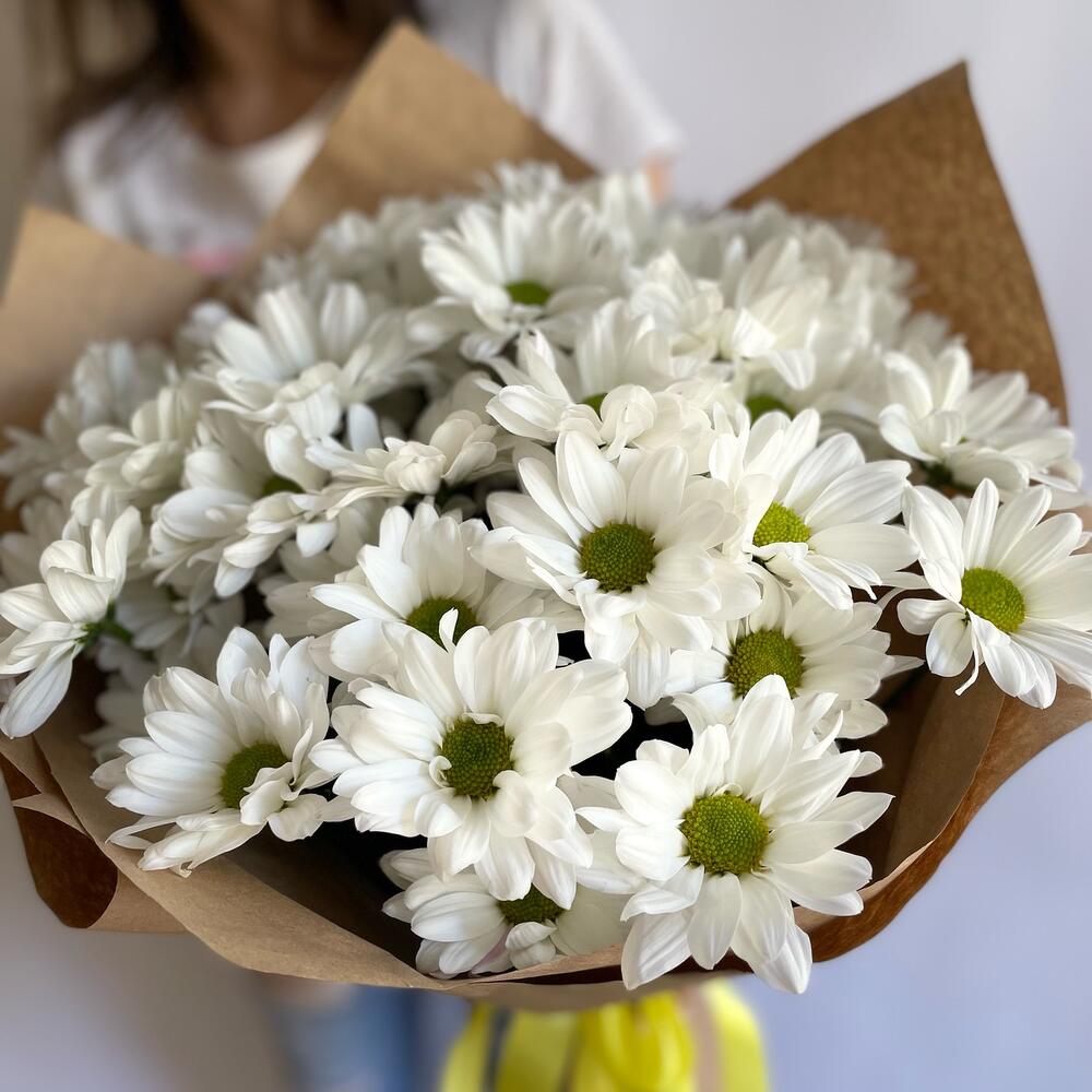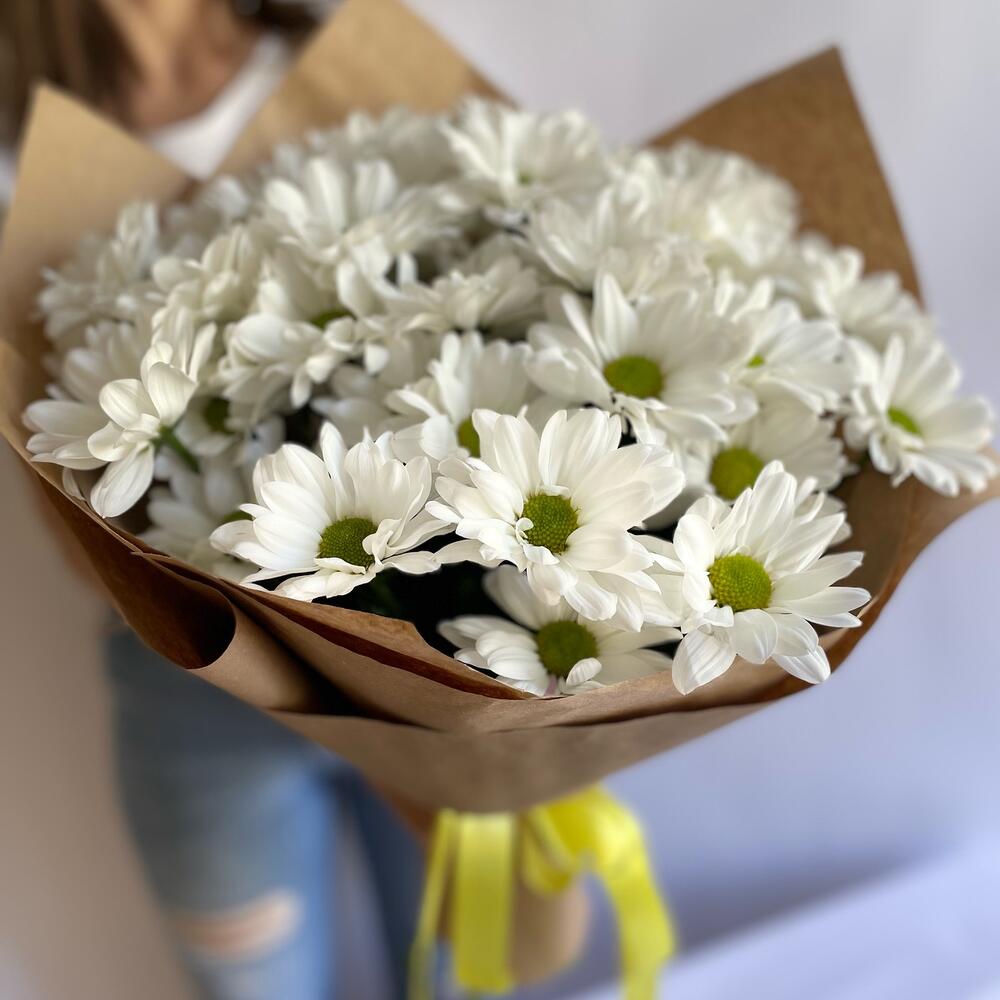 Лента – 4 шт.Хризантема кустовая – 7 шт.Крафт – 3 шт.