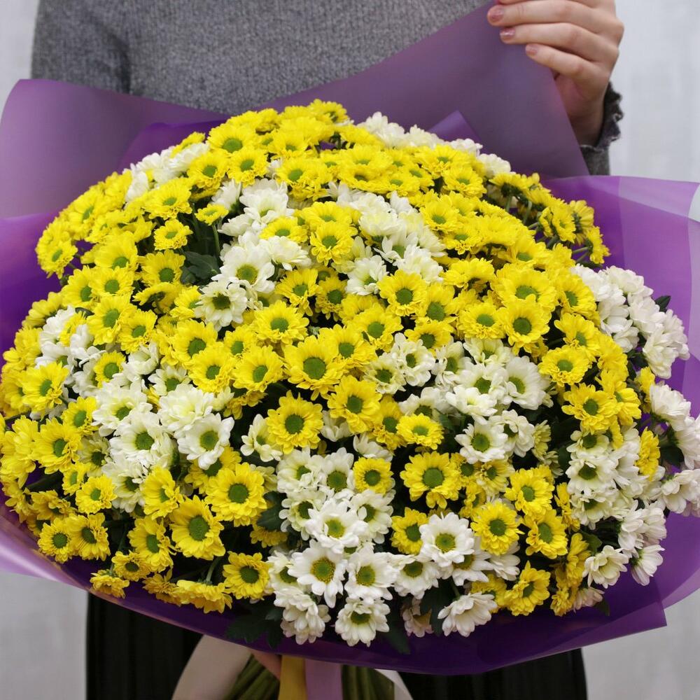 Букет из 49 кустовых хризантем Сантини микс в стильной упаковке