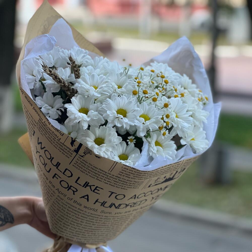 Букет из кустовых хризантем и ромашек