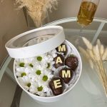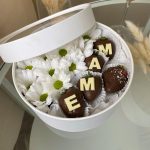 Подарочный набор “Маме” хризантема и клубника в молочном шоколаде