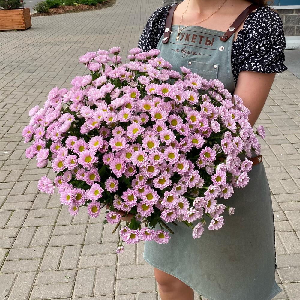 Сиреневые ромашки большой букет