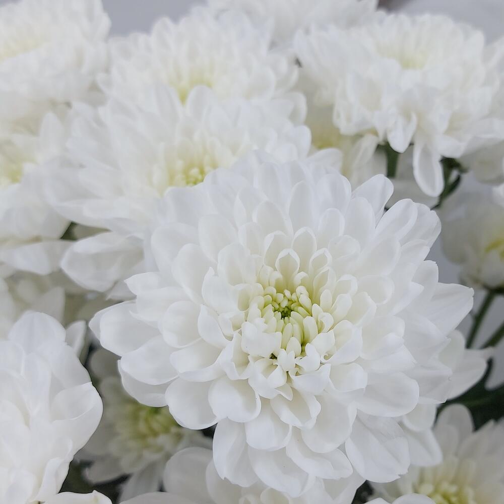 Монобукет махровых белых кустовых хризантем. Для тех, кто любит минимализм, кто ценит стиль и лаконичность Такой букет всегда уместен и подойдёт для любого повода: День Рождения, именины, годовщина свадьбы, рождение ребенка, 8 марта, День Святого Валентина, выпускной … Показать ещёи т.д. Можно вручить маме, сестре, подруге, коллеге, учителю, любимой.
