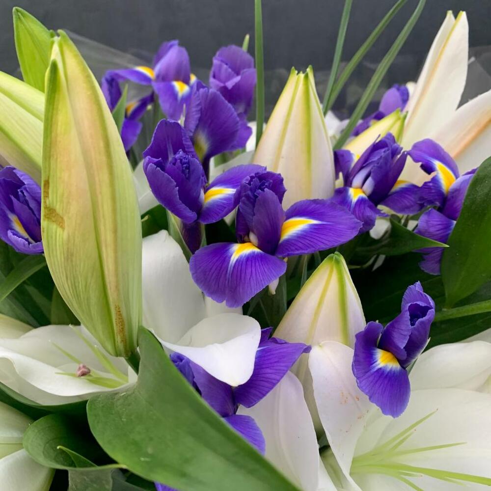 Букет из ароматных лилий и ирисов