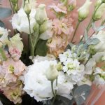 Букет из маттиолы, гипсофила, лизиантуса, герберы