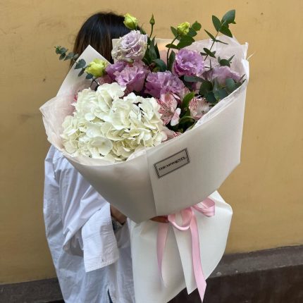 Композиция “Жоан” из лизиантусов и эвкалипта