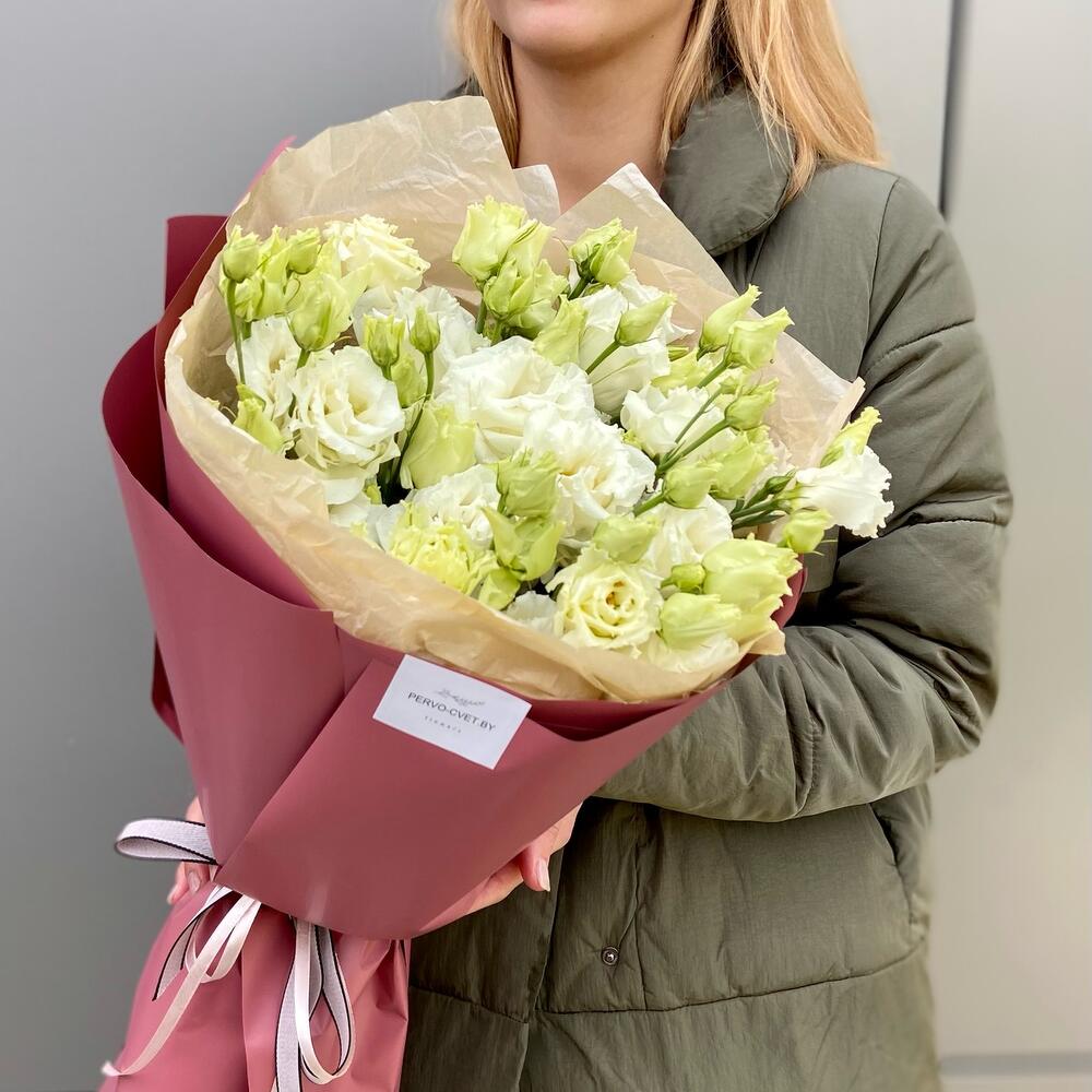 Простой и стильный букет из эустомы.