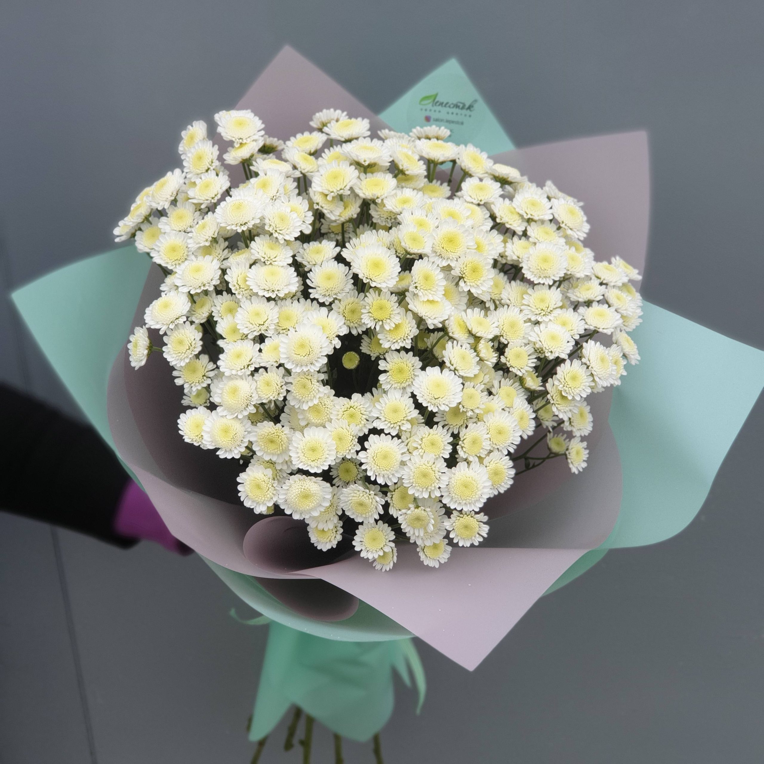 Хризантема Сталлион белая (Stallion white), Стильная упаковка