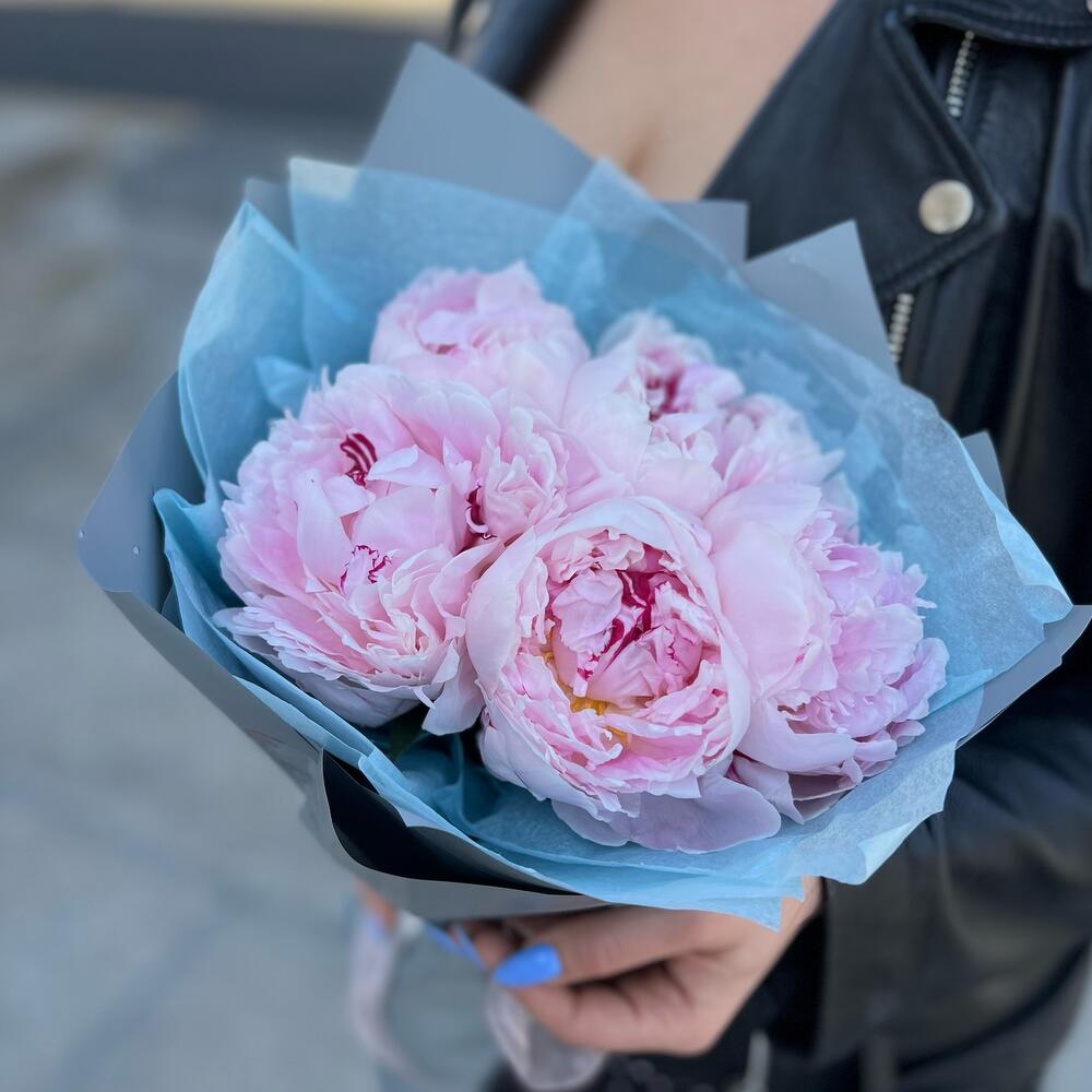 5 пионов нежно-розовых Сара Бернар