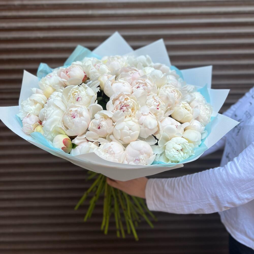51 пион белый Вип букет (моно 079)