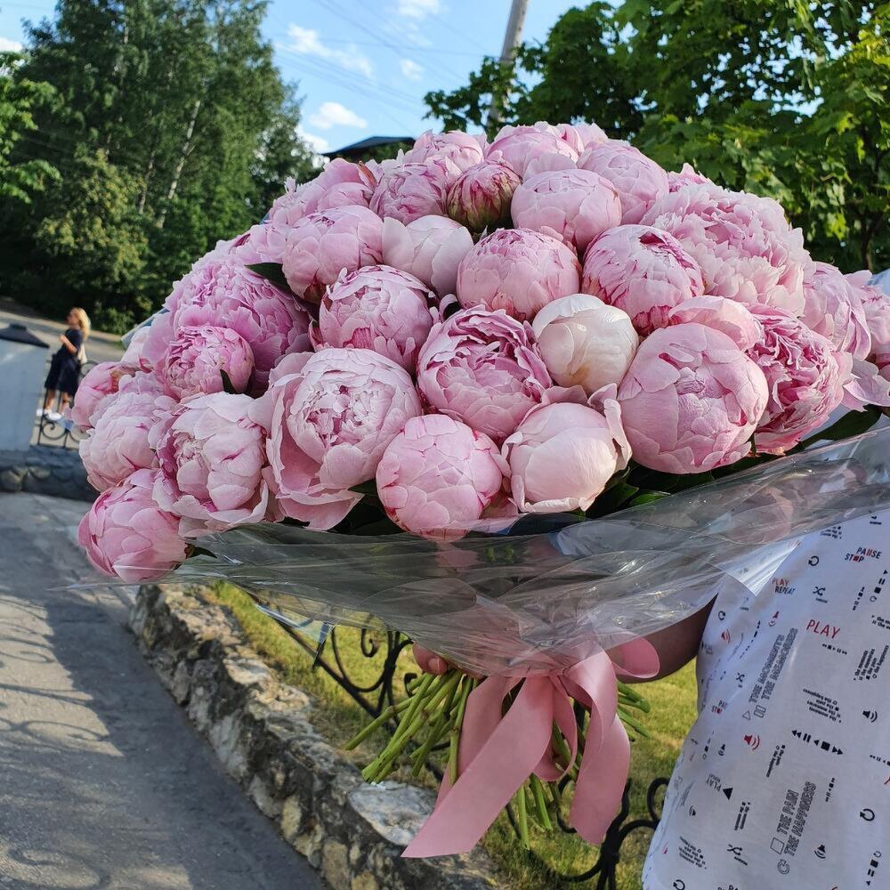 Пион Сара Бернар – 51 шт.Упаковка – 1 шт.Лента атласная – 1 шт.