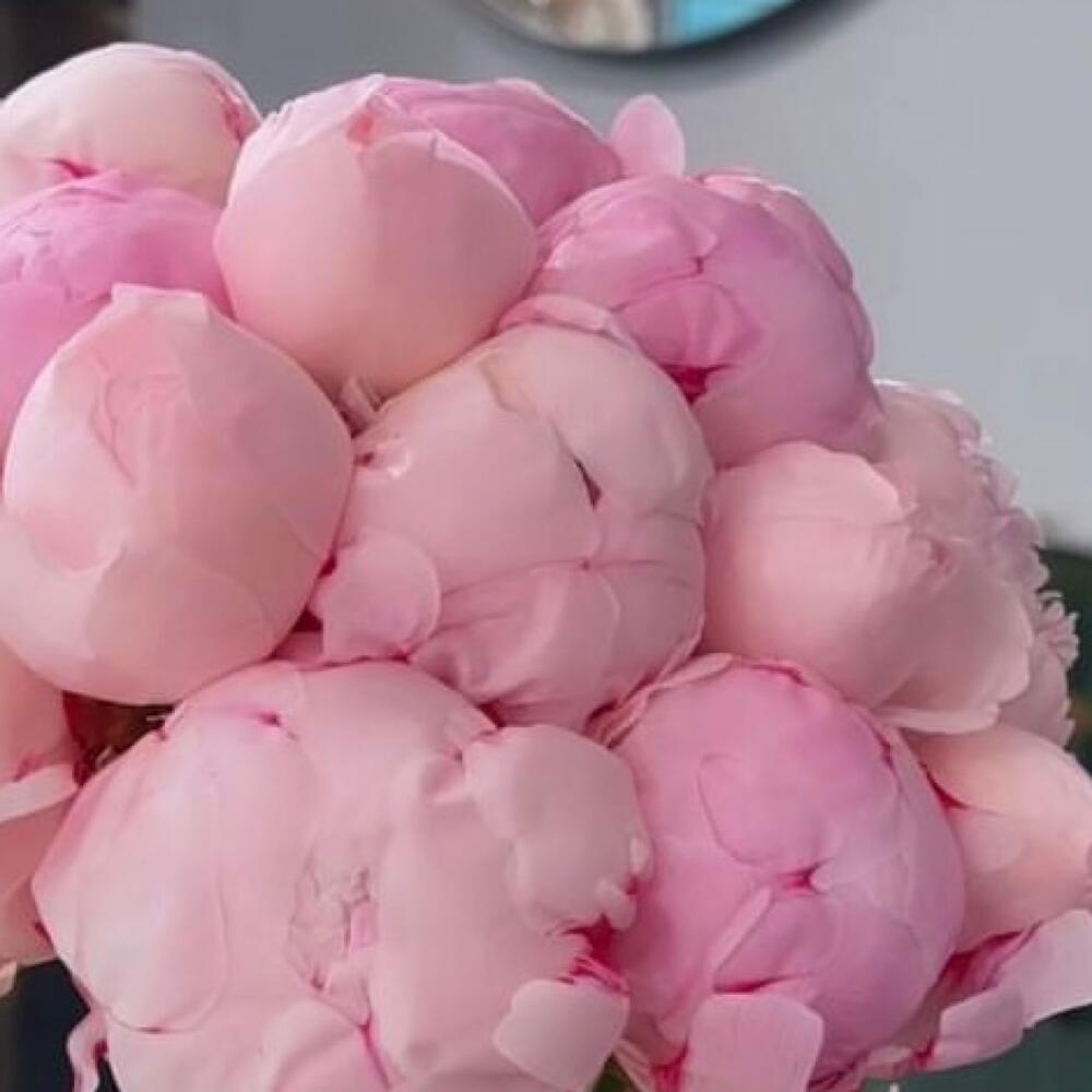 Пион розовый – 15 шт.Упаковка дизайнерская – 1 шт.Лента атласная – 2 шт.Открыточка с вашими пожеланиями – 1 шт.хорошее настроение – 100 шт.инструкция по уходу за цветами – 1 шт.коробка переноска – 1 шт.Кризал – 1 шт.
