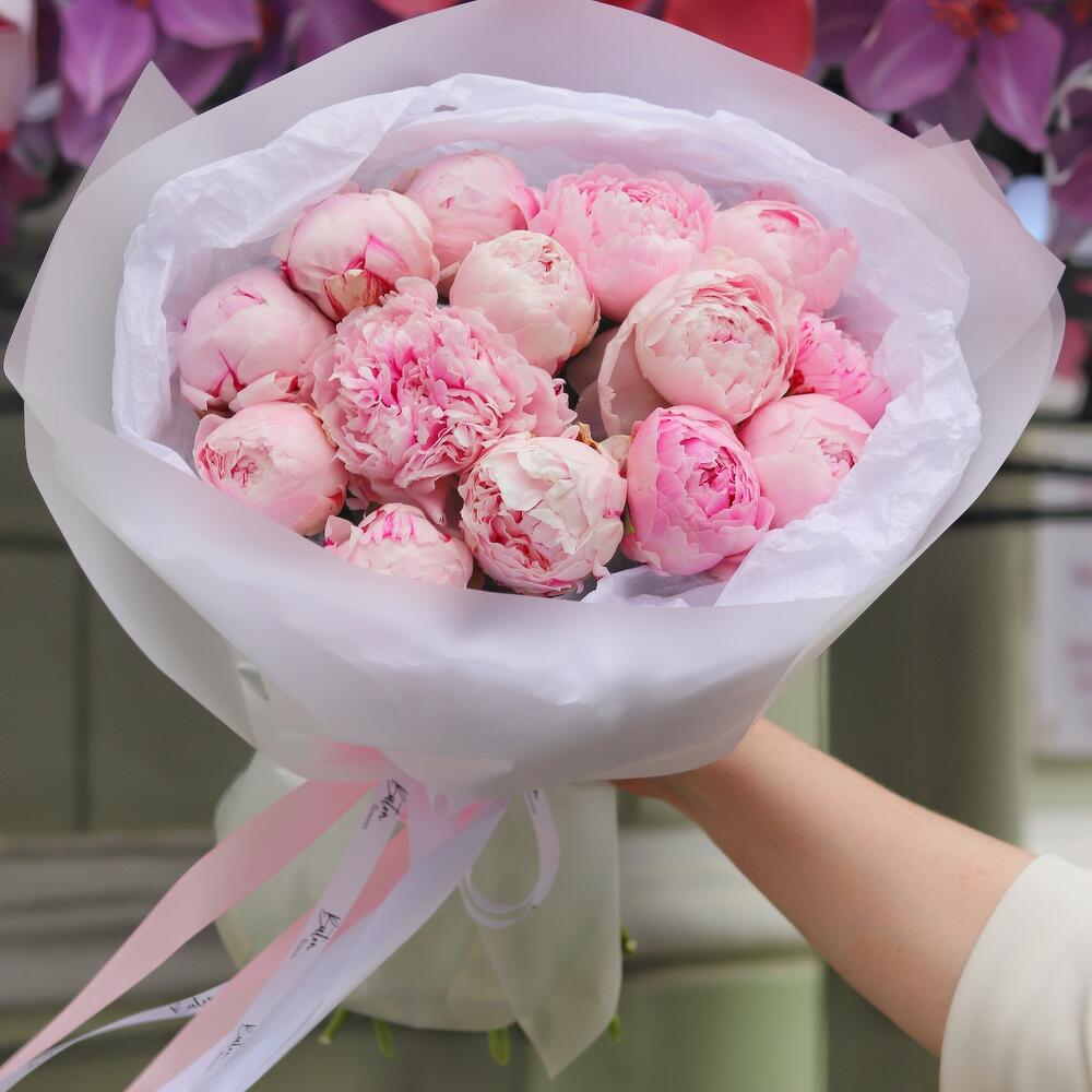 "Пиономания": 13 розовых пионов в упаковке