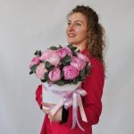 Чудесные шарики раскрываются в махровые ароматные цветы!Её любимые цветы!Ароматные розовые пионы сорта Сара Бернар Букет собран в коробочке на специальной губке, – необходимо поливать букет раз в 2 дня)Радуйте своих любимых!