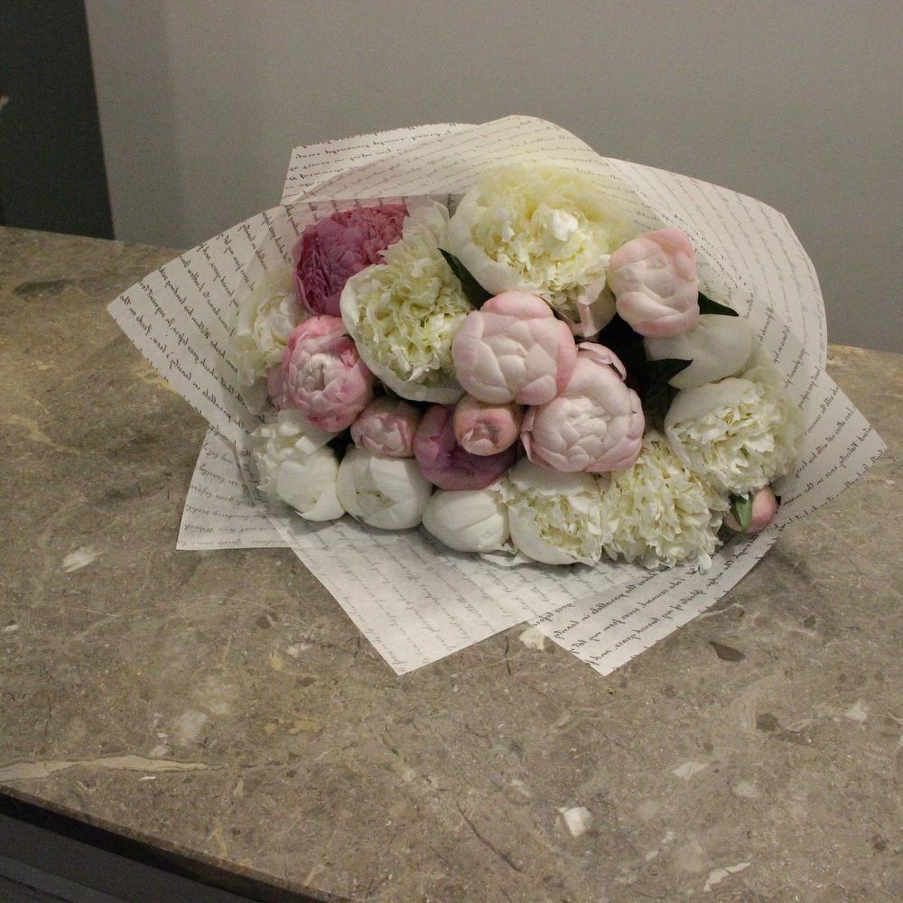 Шарики мороженогоМикс из 19 пионов, в дизайнерской упаковке.Стильное цветочное решение для любого случая.Ширина букета около 40 сантиметров, высота букета около 60 сантиметров.