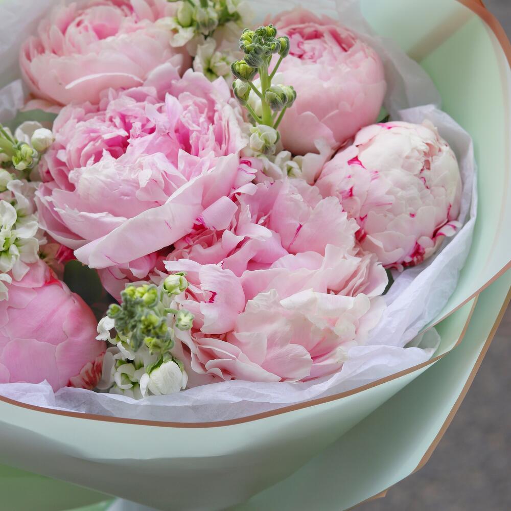 Нежный, чувственный и воздушный букет, выполненный из сказочных пионов и маттиолы.Такой букет точно понравится яркой и энергичной получательнице, и будет долго радовать её.К букету прилагается открытка с вашими пожеланиями, инструкцию по уходу за цветами и приятный комплимент от нашего магазина – шоколадка.Мы также будем рады отправить вместе с букетом конфеты, шоколад ручной работы или б/а вино по вашим пожеланиям, просто напишите нам в личные сообщения. Заказывая наш букет, Вы всегда получите исключительный сервис и заботу о клиенте