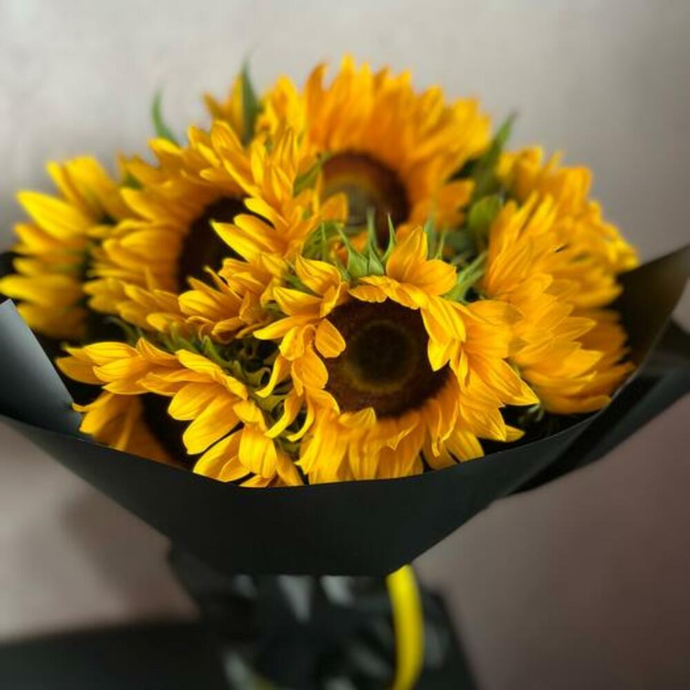 Подсолнух – 9 шт.декоративная упаковка – 1 шт.Атласная лента – 1 шт.
