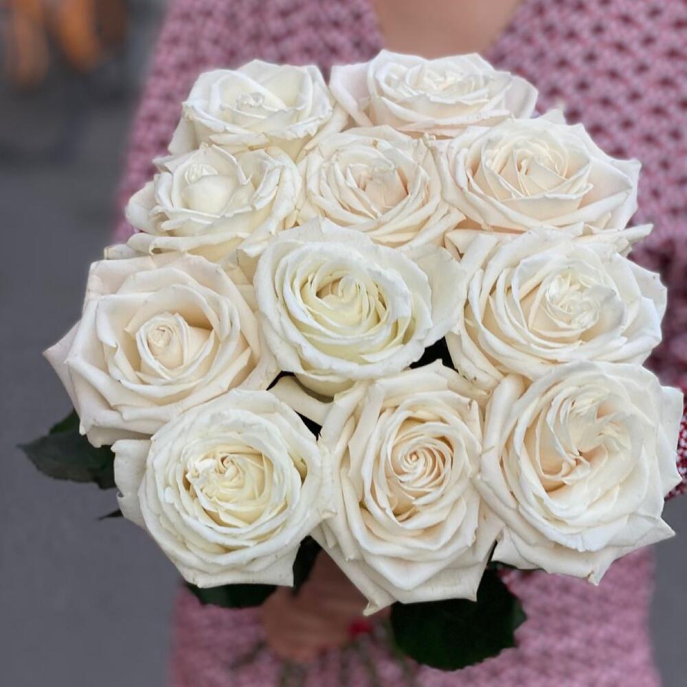 11 белых пионовидных роз