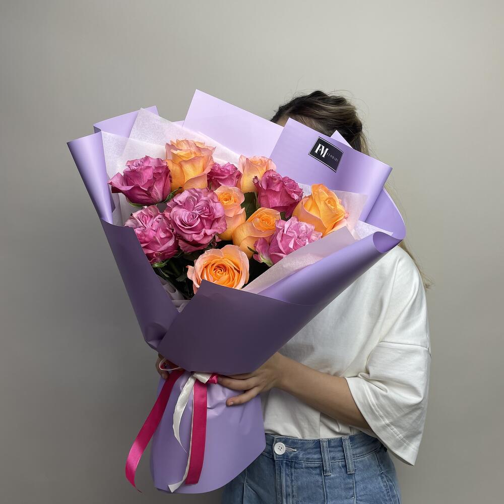 Альстромерии, Кустовые розы, Лизиантусы, Пионовидные розы, Розы, Ромашки